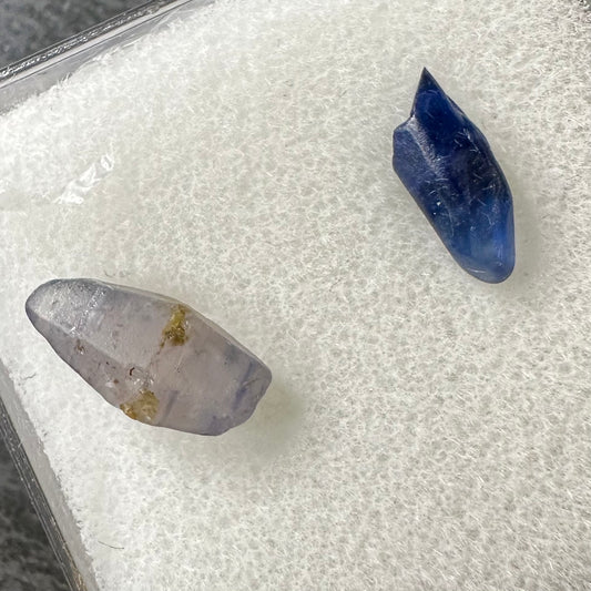 Sri Lankan Rough Sapphire crystals showing heat vs. no heat treatment.