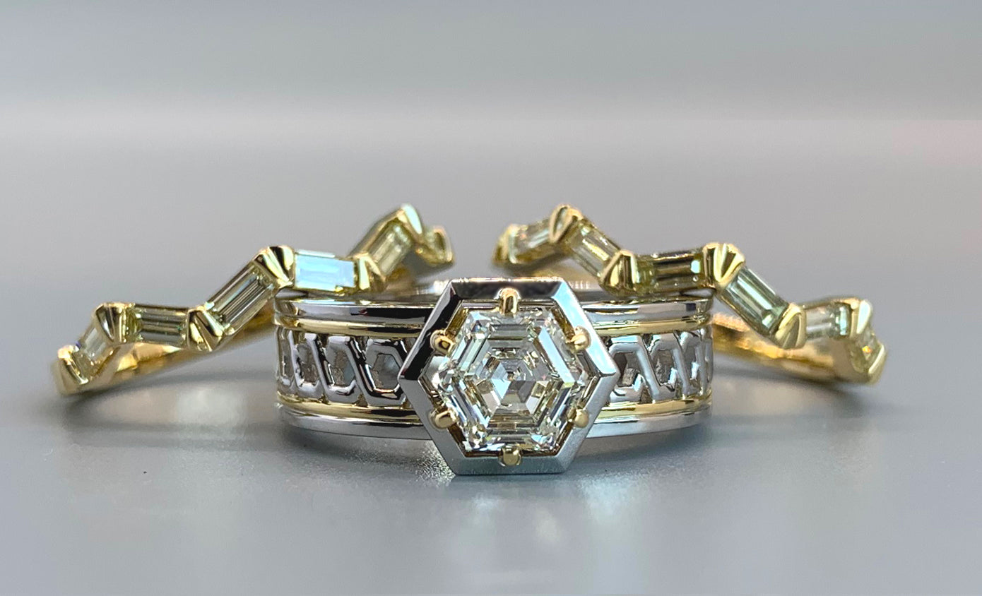 My unique process includes unlimited meetings and discussions and as many iterations as it takes to get the design just right, all included in the cost of your piece. I find this open “play” yields the most interesting jewelry that tells your story. After we arrive at the perfect wax model you get to come in and hold the torch as we solidify your idea in precious metals! This is an exciting part of the process where you can bring friends and family to celebrate the creation of your rings.