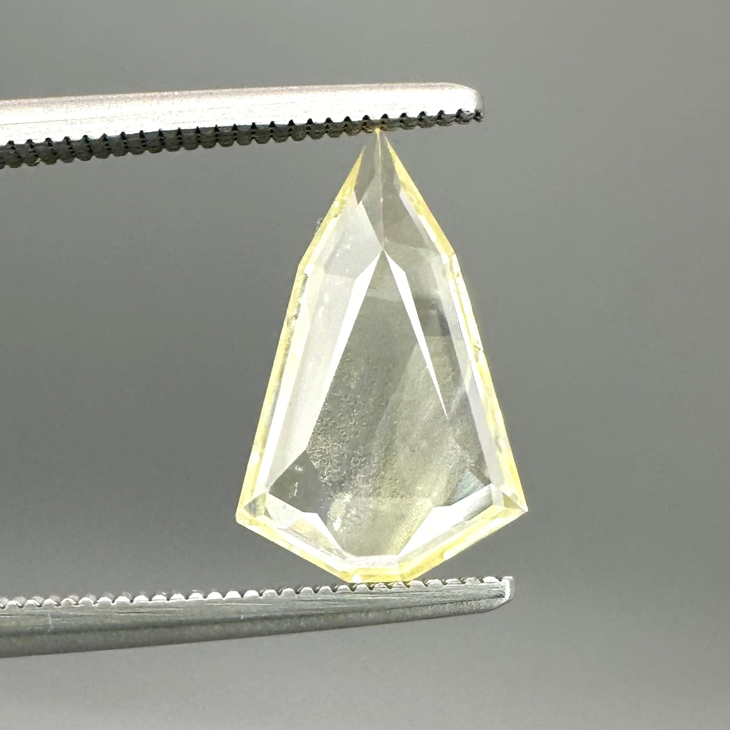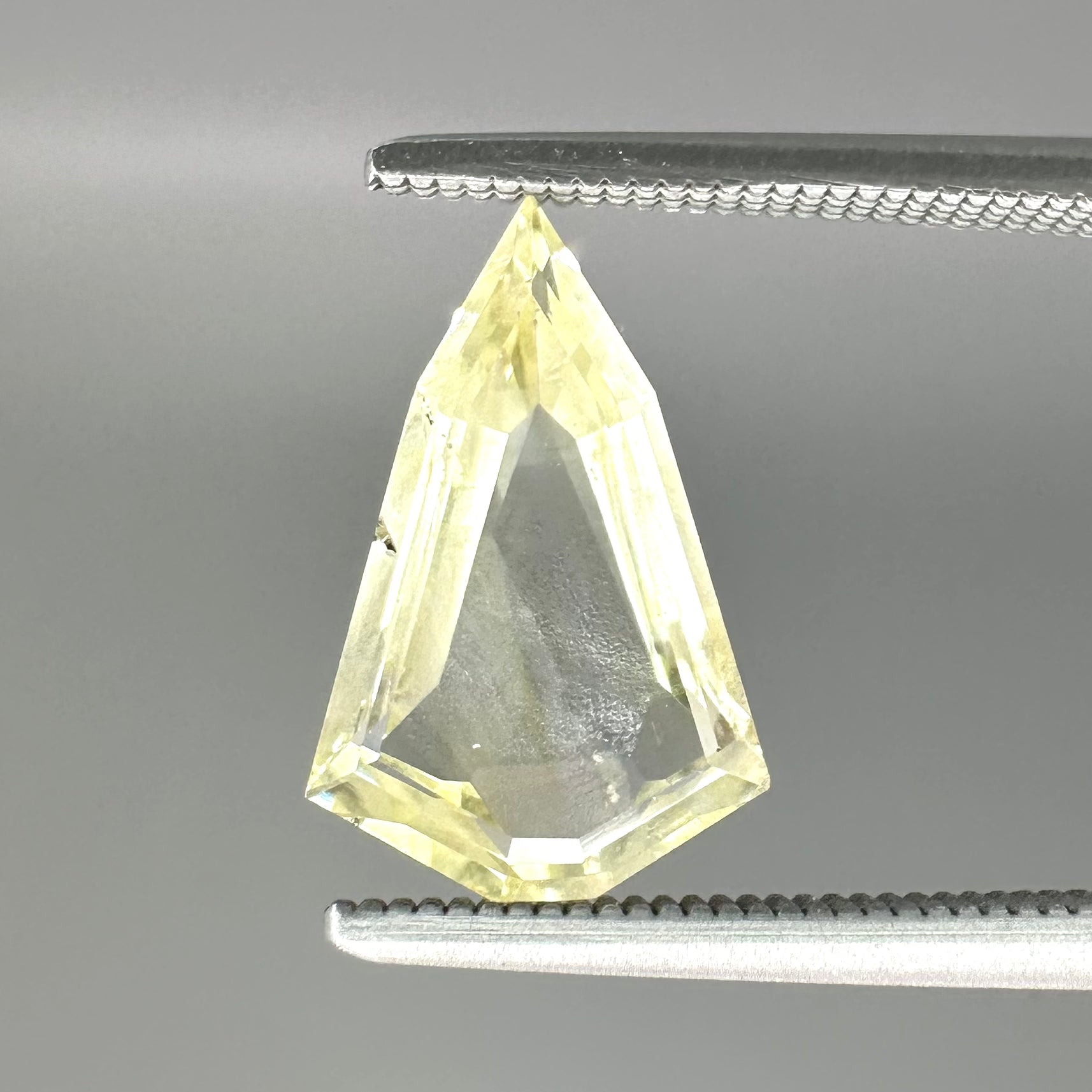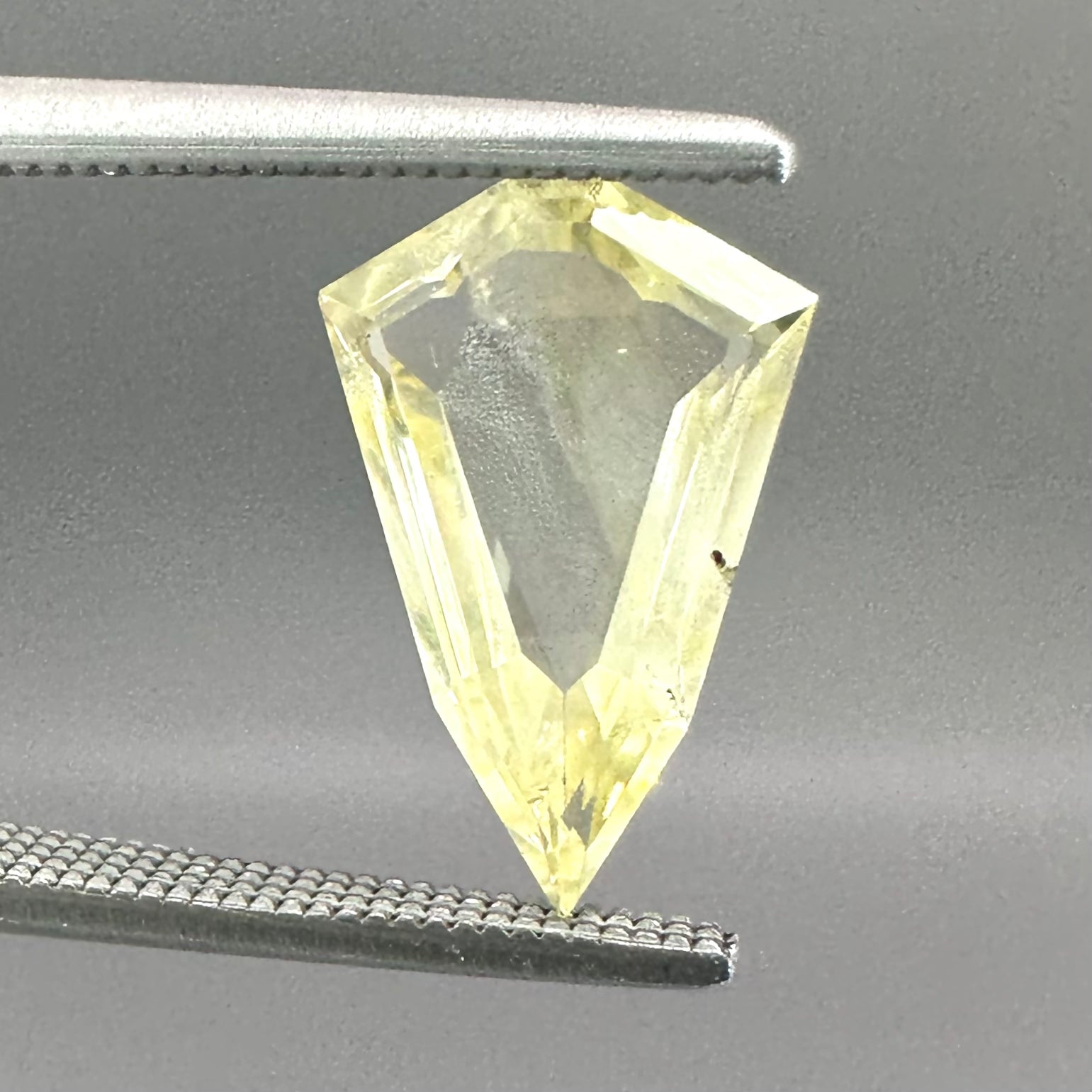 Aegis, named for the shield carried by Zeus and Athena in Greek mythology, is a one-of-a-kind shield-shaped portrait cut yellow sapphire from Sri Lanka.